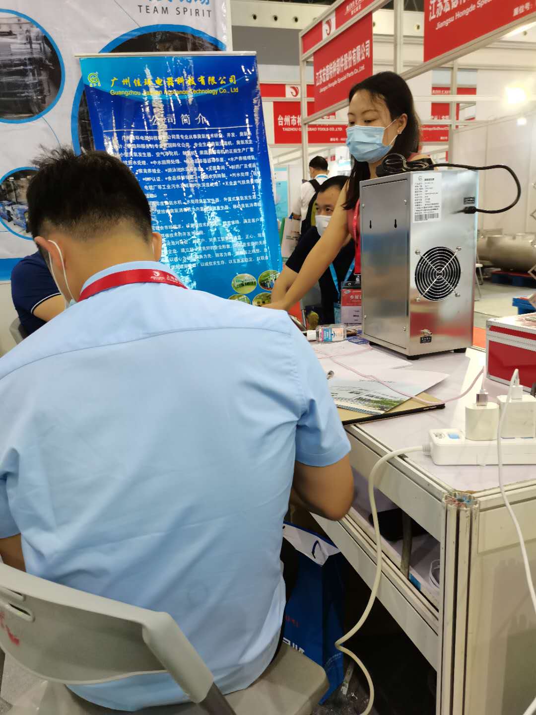 上海防疫物資展會(huì),佳環(huán)臭氧發(fā)生器接待外國客戶現(xiàn)場,臭氧發(fā)生器nkq臭氧發(fā)生器_臭氧消毒機(jī)_臭氧水機(jī)_制氧機(jī)_廣州佳環(huán)電器【官網(wǎng)】